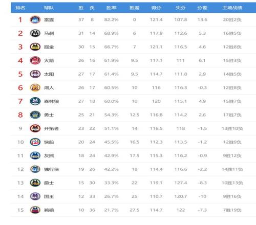 马刺赢球后31胜14负,排名西部第二,领先第三的掘金1个胜场。